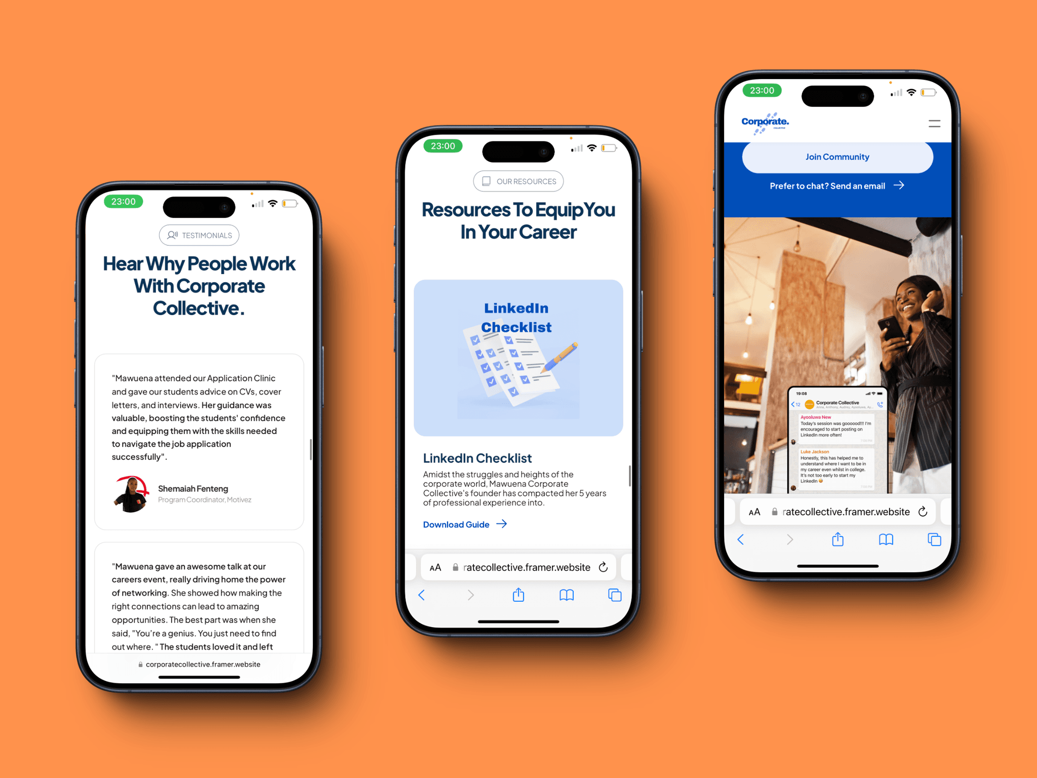 Students and professionals often browse while commuting or during breaks, so I made sure the website works smoothly across all devices. The goal was to help students easily discover the opportunities available to them and clearly understand what Corporate Collective is about. By keeping things clear and accessible, users can quickly find what they need without any hassle.