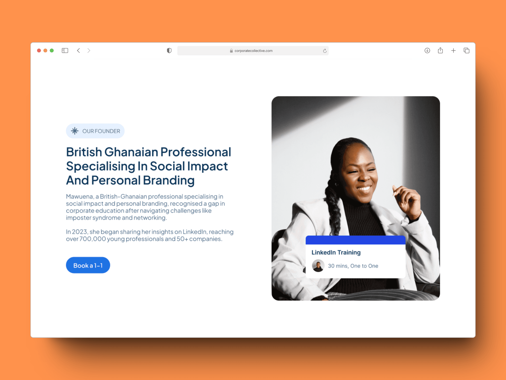 As well as targeting students and professionals, Mawuena wanted schools and organistions to book the services of Corporate Collective. The thought was to enhance the professional of Mawuena's brand. Simple touches such using videos to show Mawuena's previous speaking engagements helped to build trust with partners.